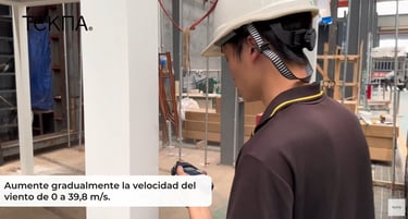 Ensayo de resistencia al viento realizado por Intertek sobre pérgola TEKNA, sometida a ráfagas de hasta 143 km/h, bajo normativa europea EN 1991-1-4, verificando su estabilidad y seguridad.