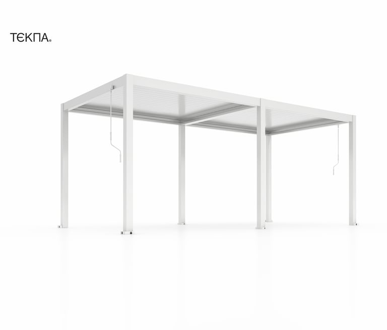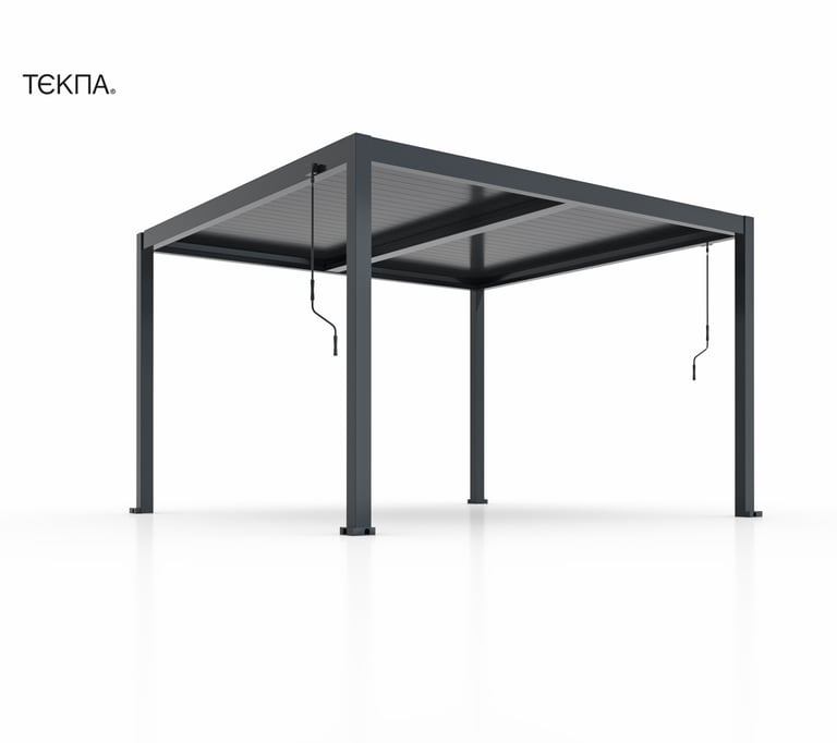 La Pérgola TEKNA Manual es una estructura bioclimática de aluminio diseñada para brindar sombra, ventilación y protección en espacios exteriores. Fabricada en aleación 6063-T6 con recubrimiento en polvo AkzoNobel, ofrece una durabilidad superior, resistencia climática y cero mantenimiento. Sus lamas orientables permiten regular la luz y el flujo de aire mediante apertura y cierre manual con horquilla, logrando un control sencillo y funcional.